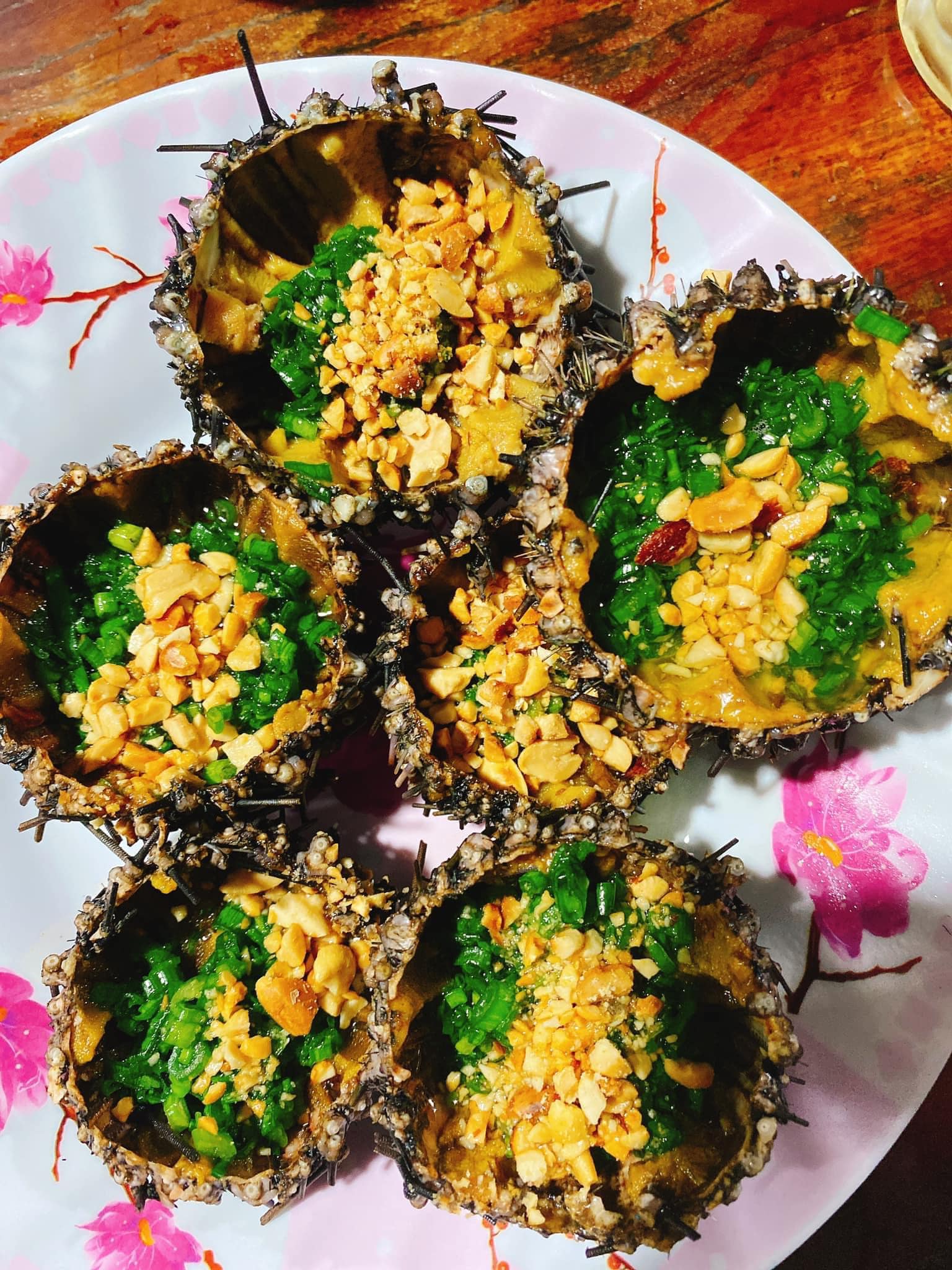 Không cần lo lắng phải nấu nướng hay tìm quán ăn, bạn có thể đặt nấu ăn theo yêu cầu ngay tại homestay hoặc điểm nghỉ dưỡng. Từ những loại hải sản tươi ngon như: nhum, cầu gai, ghẹ, cá mú, tôm sú..., người dân đảo sẽ chế biến thành các món đậm chất miền biển.
